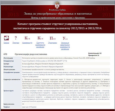 У Креативној школи, на основу конкурса, три часа (урађени у сарадњи са наставницима из моје школе), постала су део Базе знања за све просветне раднике.